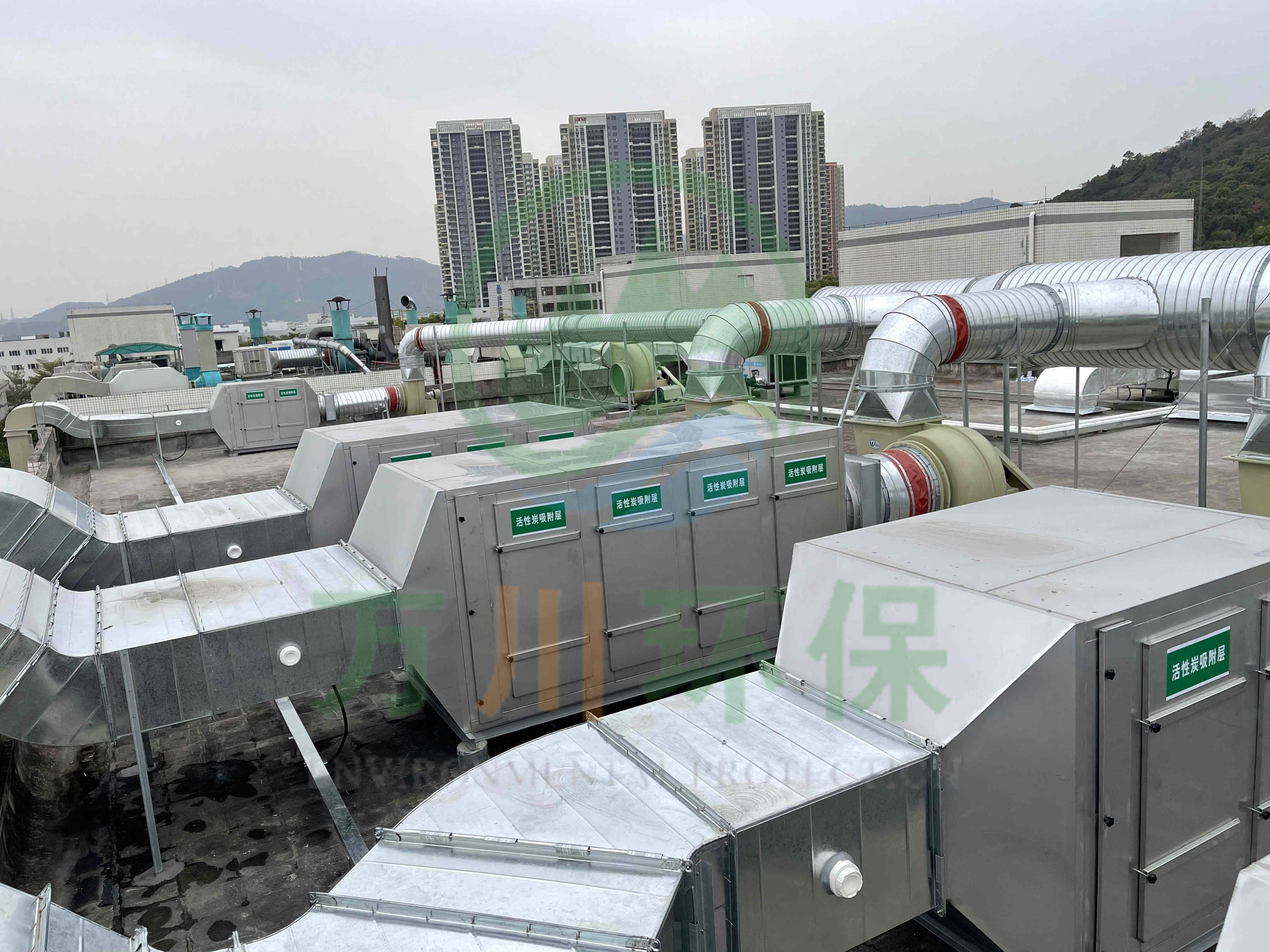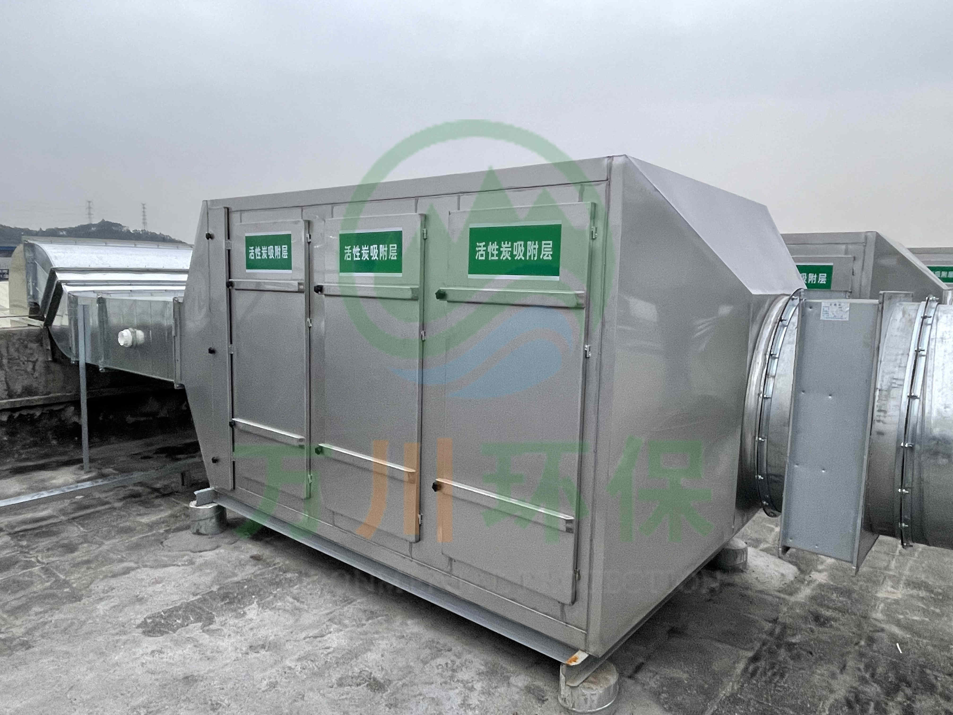 在廢氣處理上選用了活性炭吸附法,我們以活性炭作為吸附介質,廢氣通過活性炭吸附裝置,活性碳吸附有機揮發物,使其與氣體混合物分離,從而使氣體得到凈化。